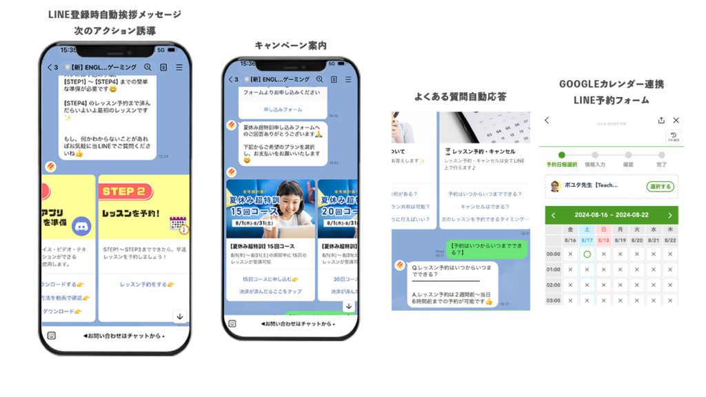 オンライン英会話のLステップ(チャットボットツール)構築。LINEで予約・質問自動応答・販促まで一括して行えるように、構築からバナーデザインまで一貫して行いました。